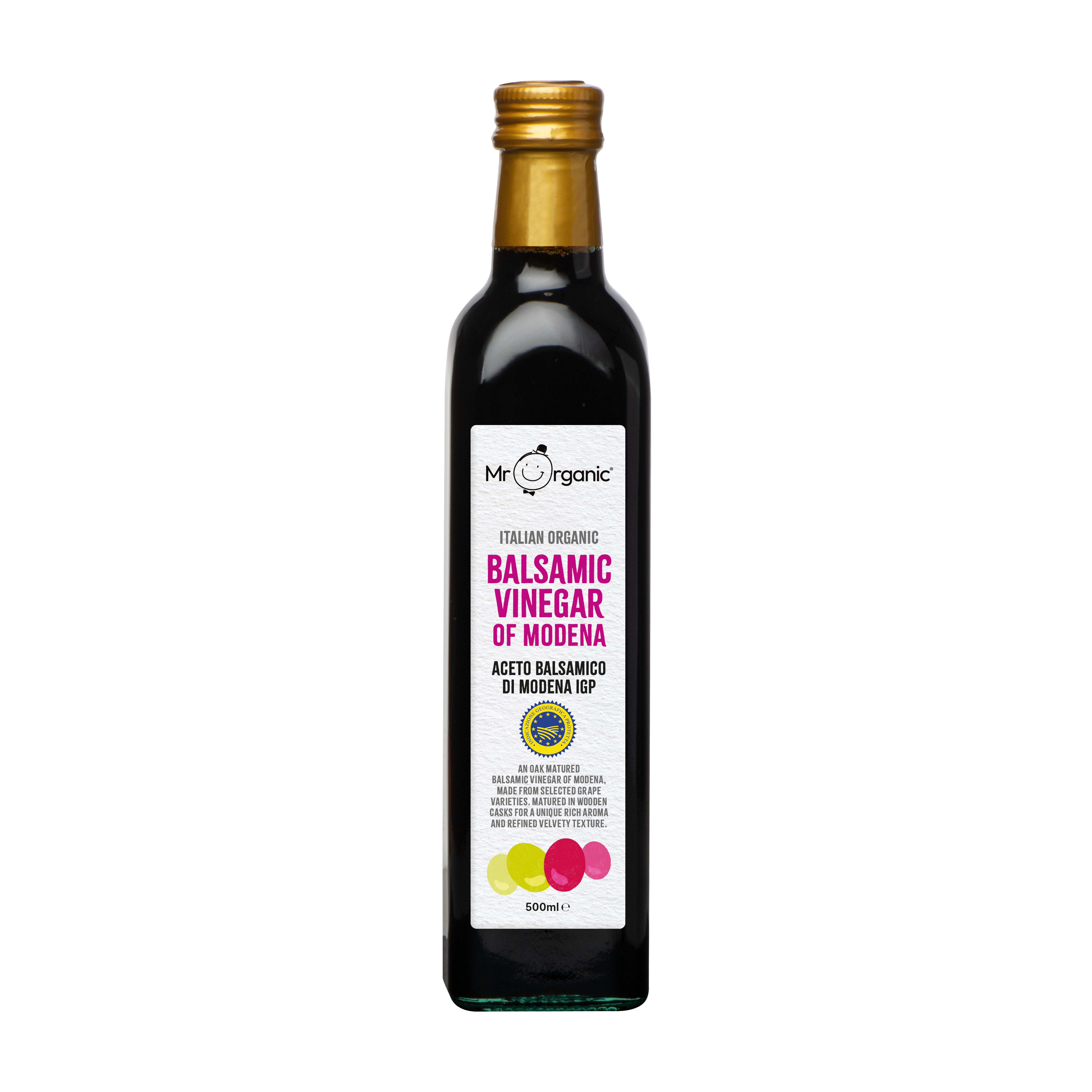 Our Balsamic Vinegar of Modena is made from select grape varieties, matured in oak casks in Italy. Using only organic ingredients, this traditional Italian Balsamic Vinegar is free from pesticides.