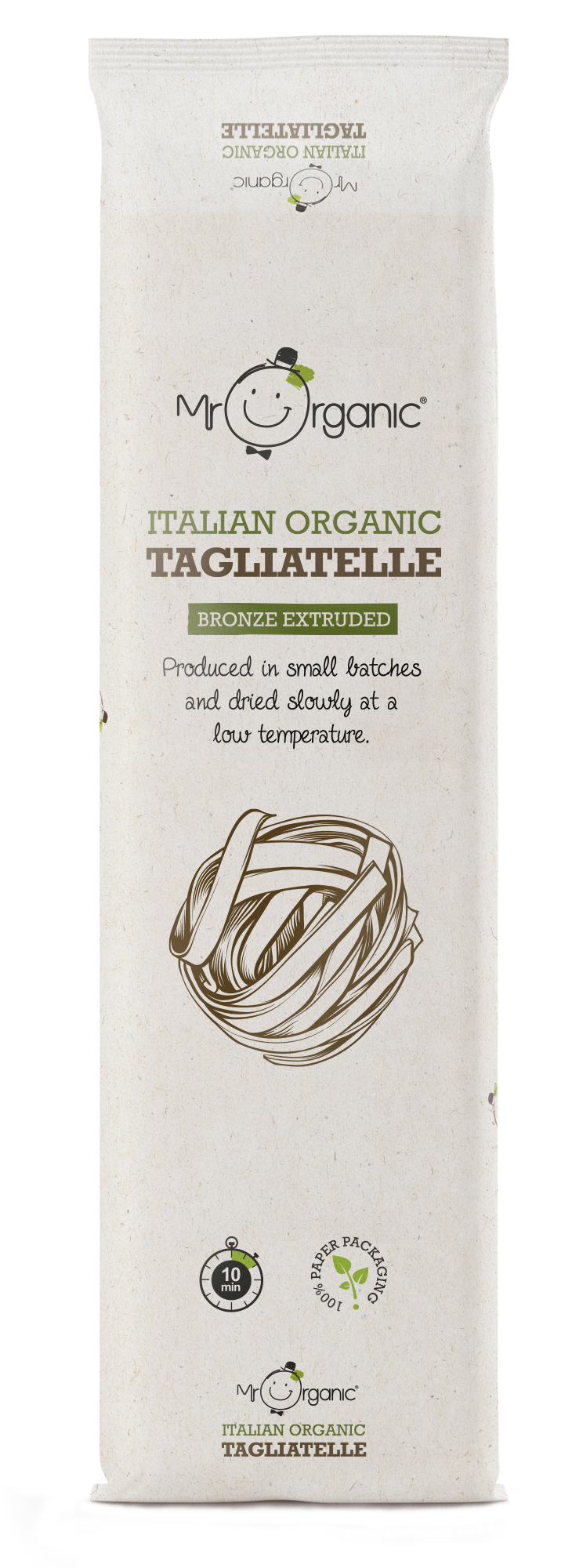 Our organic Tagliatelle is made from 100% Italian durum wheat semolina in Canosa di Puglia, a region known as the ‘granary’ of Italy. It is bronze extruded to create a rough texture that helps it soak up more sauce for authentic texture and taste. Packed in recyclable paper packaging, our Pasta is better for the planet and full of organic goodness!
