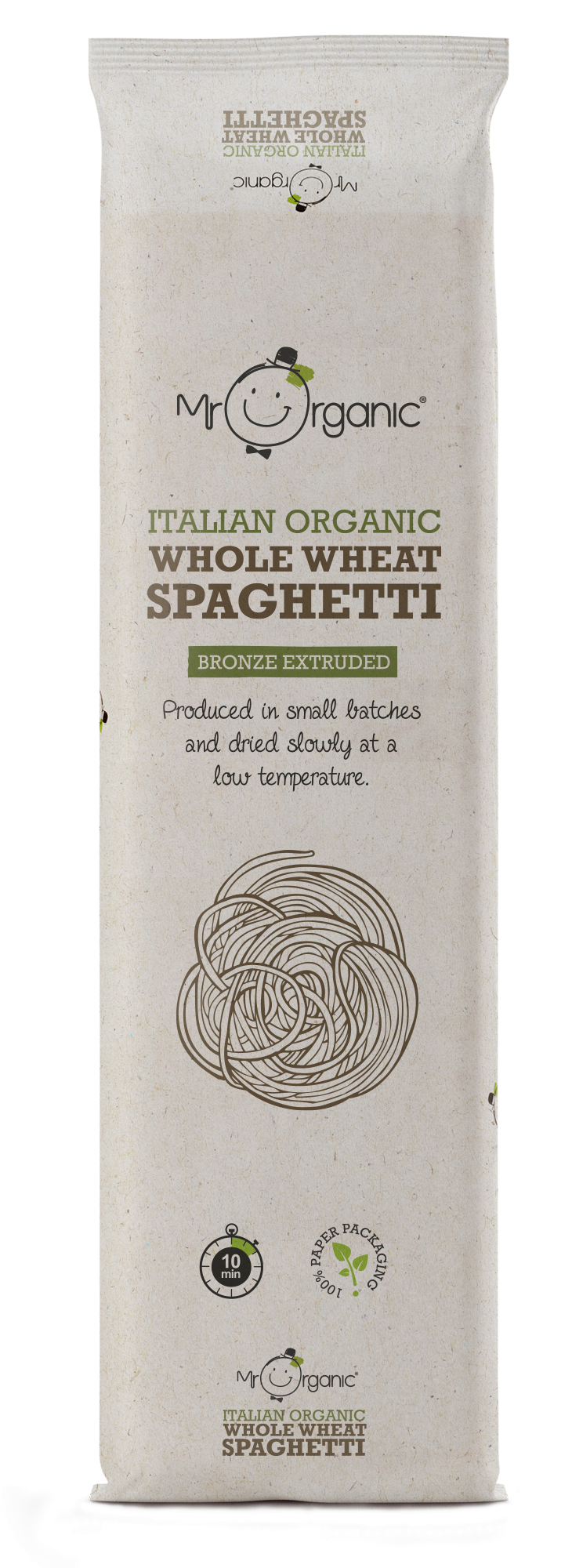 Our organic Whole Wheat Spaghetti is made from 100% Italian durum wheat semolina in Canosa di Puglia, a region known as the ‘granary’ of Italy. It is bronze extruded to create a rough texture that helps it soak up more sauce for authentic texture and taste. Packed in recyclable paper packaging, our Pasta is better for the planet and full of organic goodness!